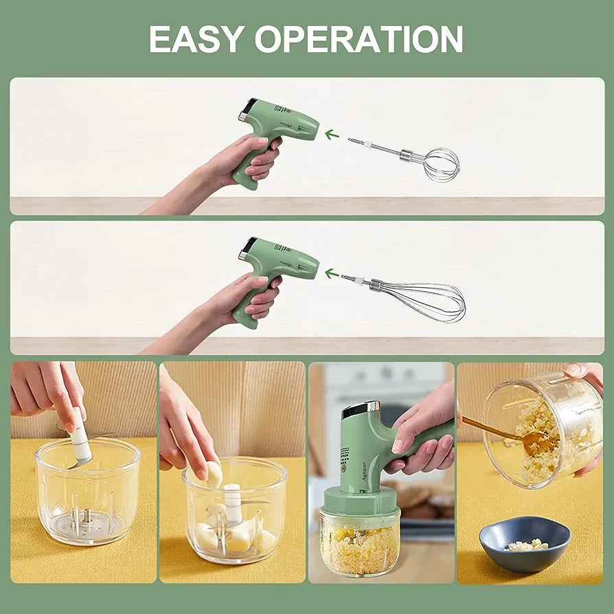 🌟 Versatilidad 3 en 1: Mezcla, muele, y pela ajo con facilidad. ¡Incluso puedes usarlo como batidor de huevos! 🧄🥚